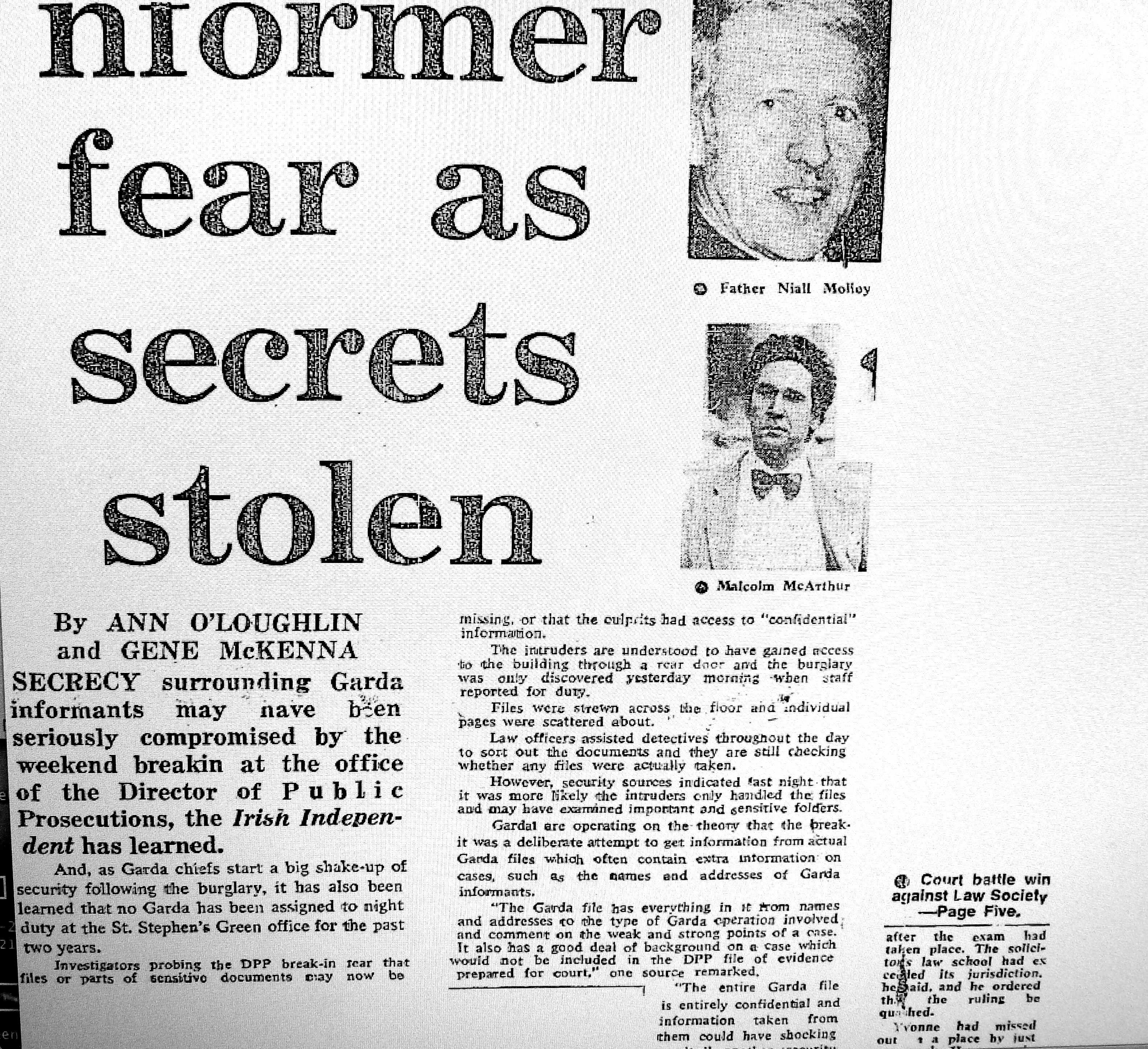 Did the Gardai do a “Deal” with Martin Cahill ( The General ) for the return of the Stolen DPP file on my late Uncle Niall Molloy ?
