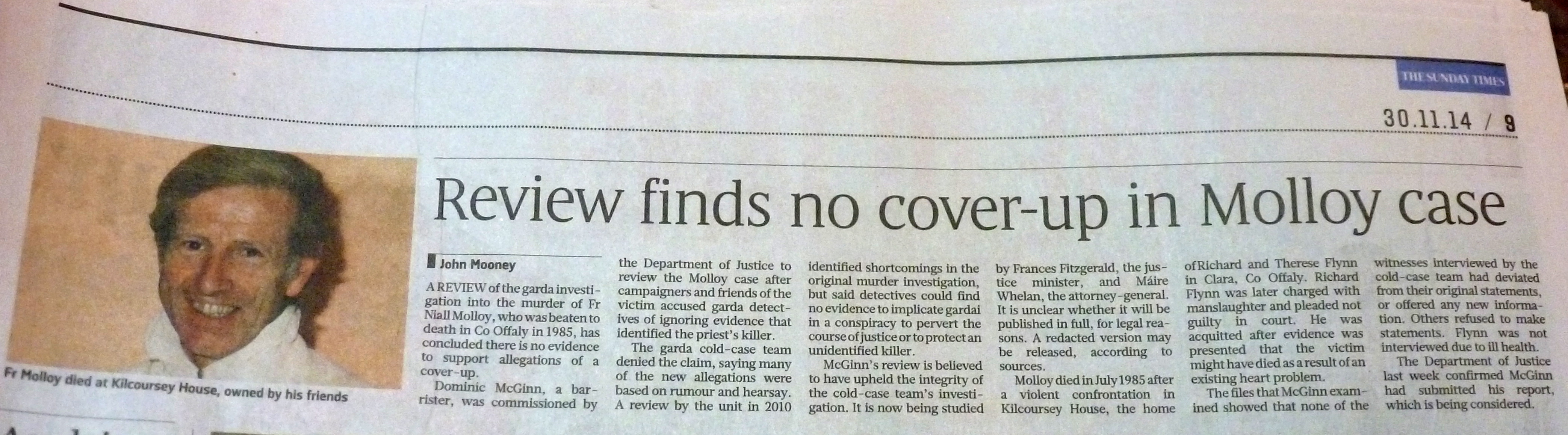 Review finds no-cover up in Molloy case – Sunday Times