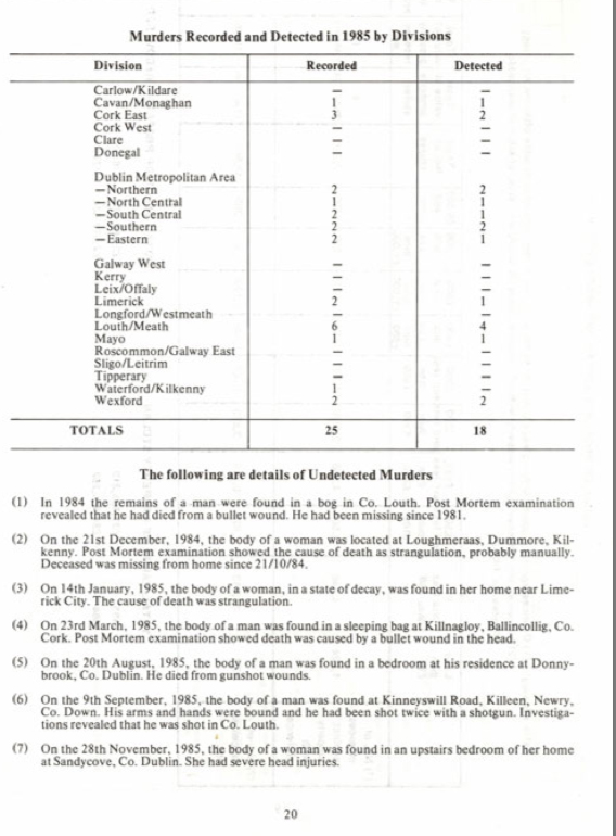As you can see here there were no Murders recorded in the Laois/Offaly Division of the Garda Síochána for the year 1985