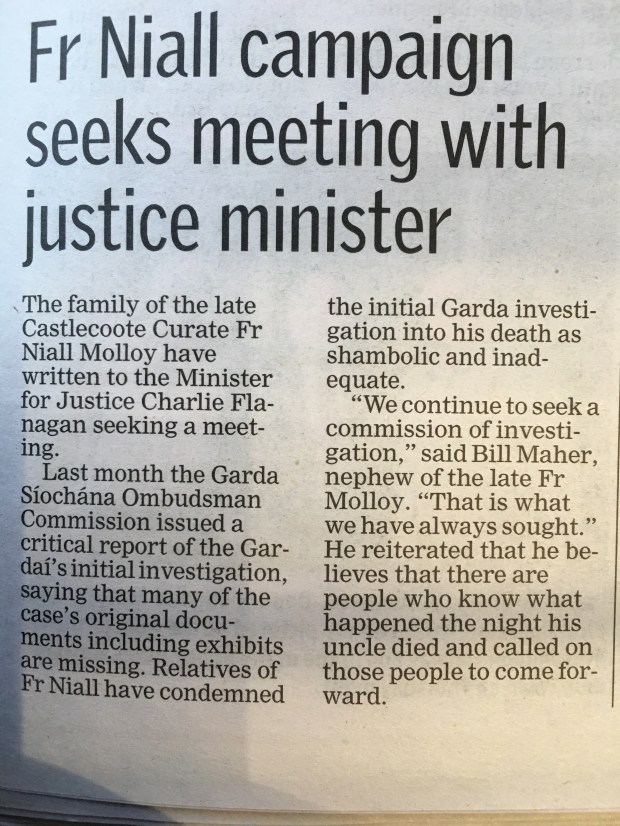 In true form for Ministers of Justice we are waiting for a reply to our letter from Charlie Flanagan T. D. After our meeting with his predecessor Frances Fitzgerald she would not reply and we had to contact the ombudsman.