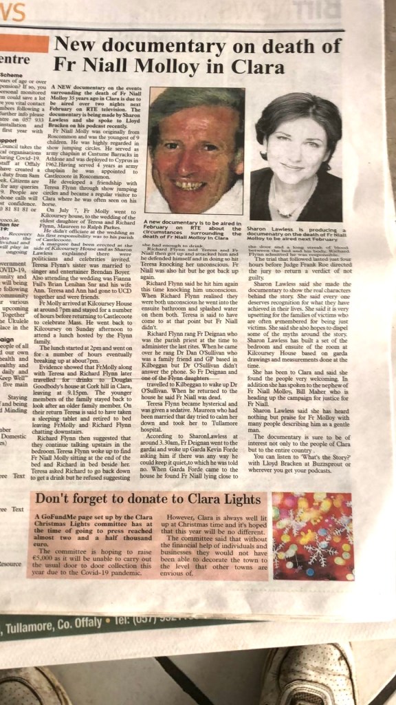 Article in this weeks Tullamore Tribune about the Documentary which is nearing completion.