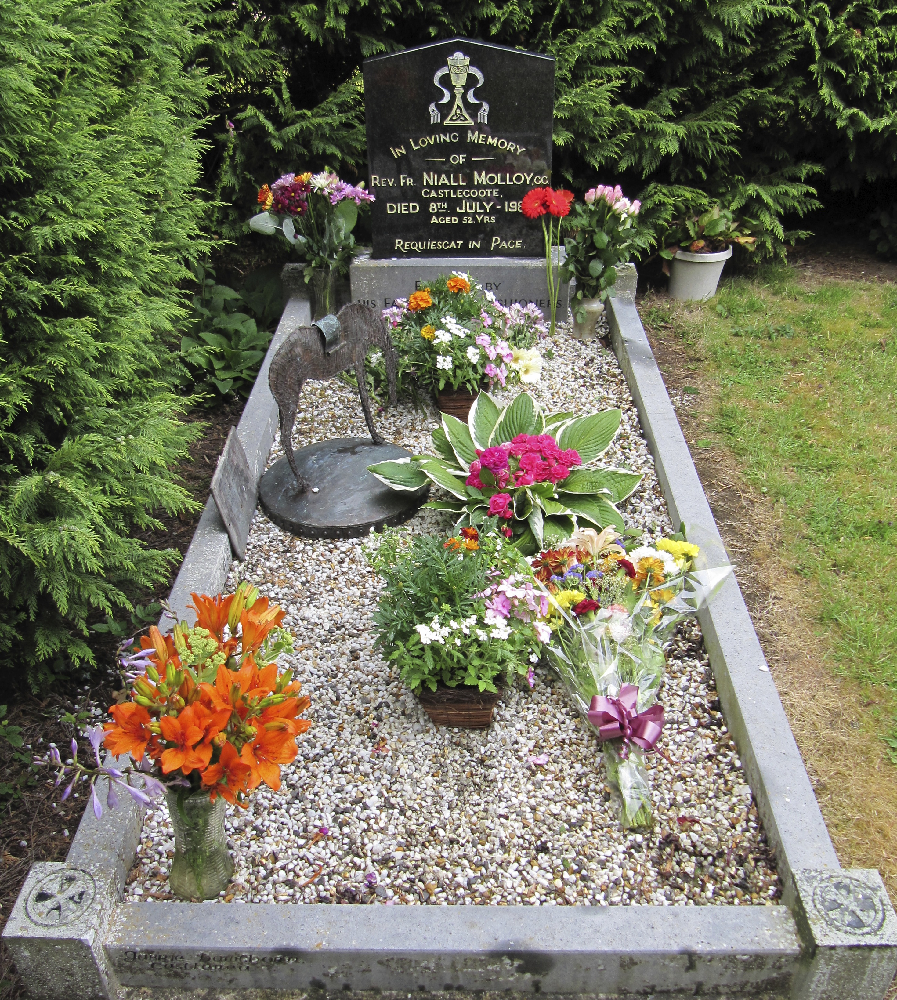 At the insistence of his Parishioners Niall was buried beside his Church in Fuerty, Castlecoote, Co. Roscommon. His superior Fr. Jones wanted the grave to be be ,out of sight, behind the Church.