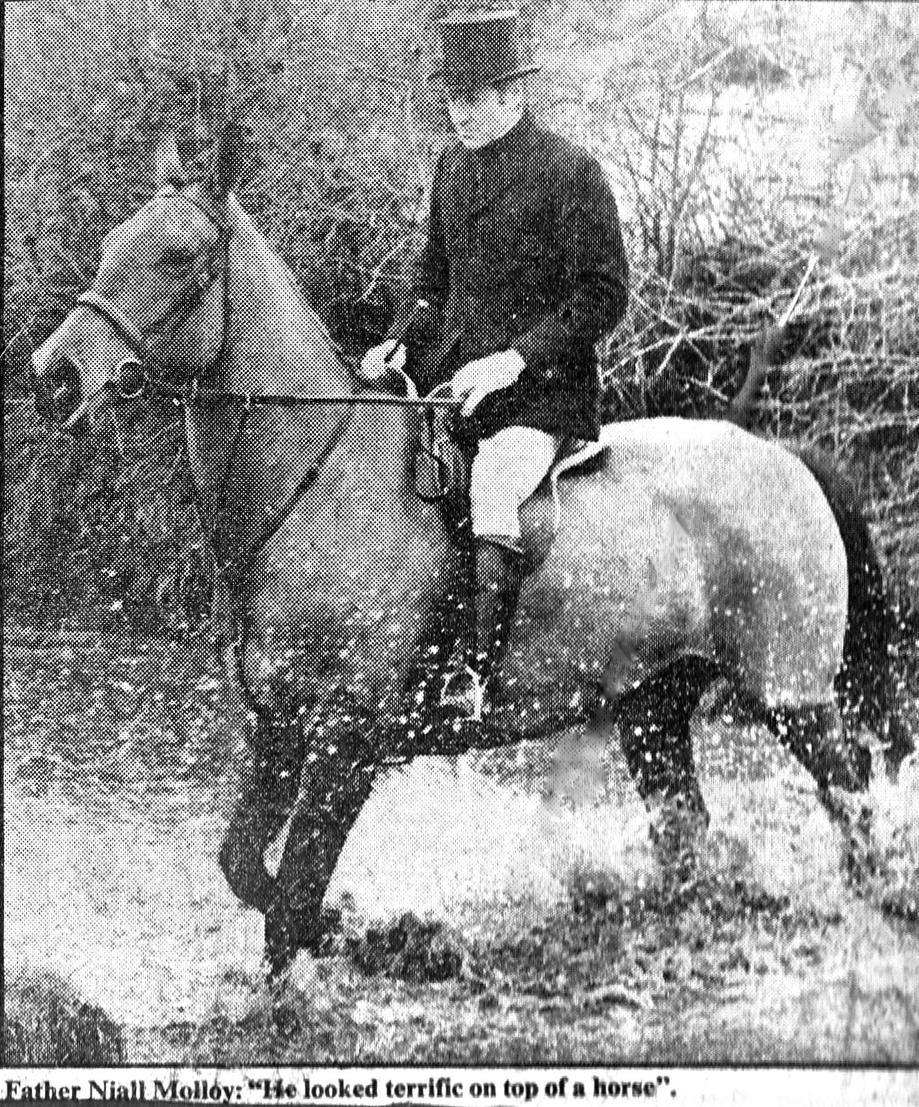 Father Niall Molloy (1933 – 1985) was a catholic priest who was killed in mysterious circumstances in Kilcoursey House in Clara, Co.Offaly , Ireland. the home of Richard and Therese Flynn. When the Gardai ( Irish Police ) arrived, they found that there were signs of violence in the Flynn’s bedroom and that there was a large bloodstain on the carpet. Flynn was charged with manslaughter and with actual bodily harm. Niall died a day after the wedding of the Flynns’ daughter Maureen to Ralph Parkes.