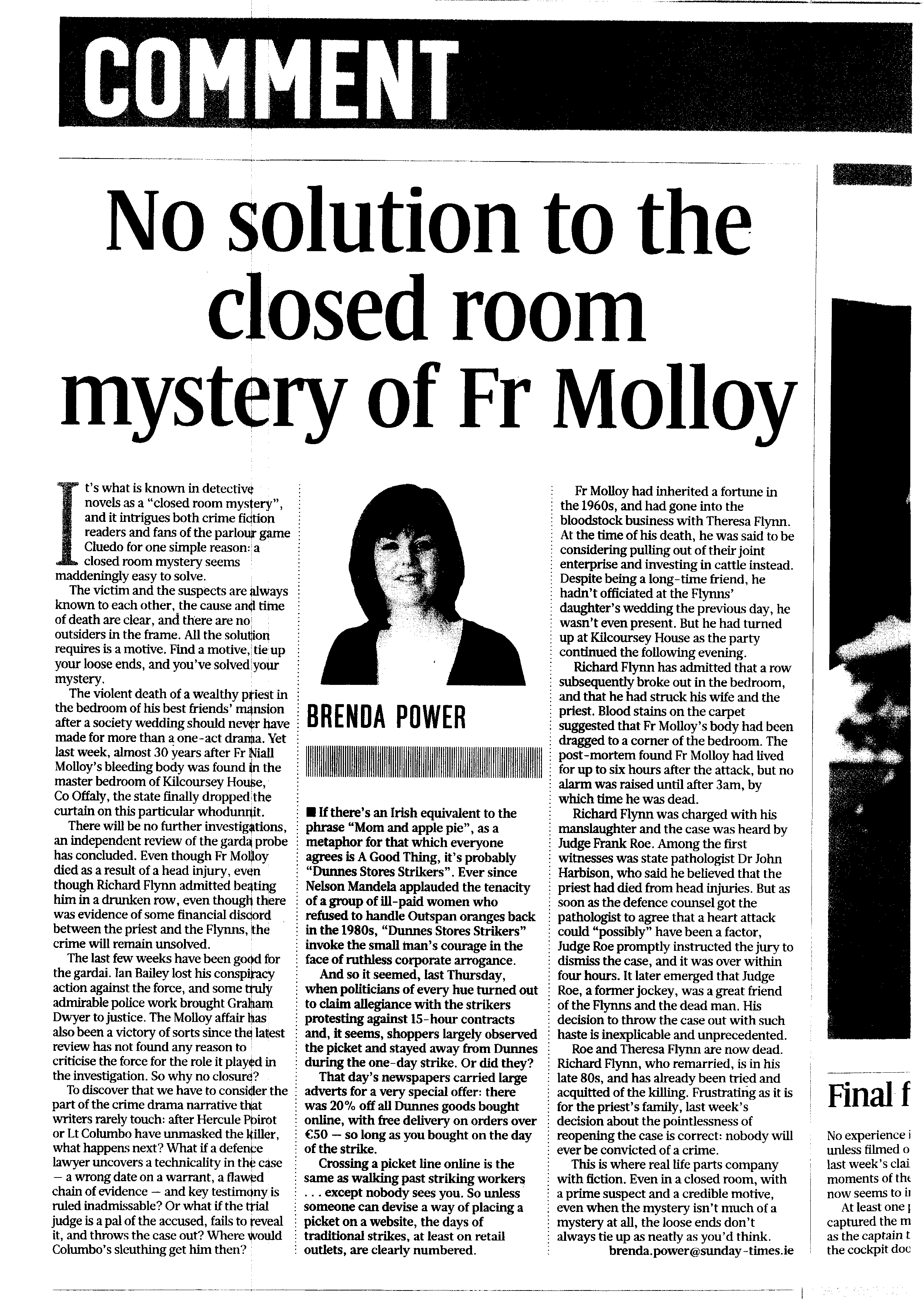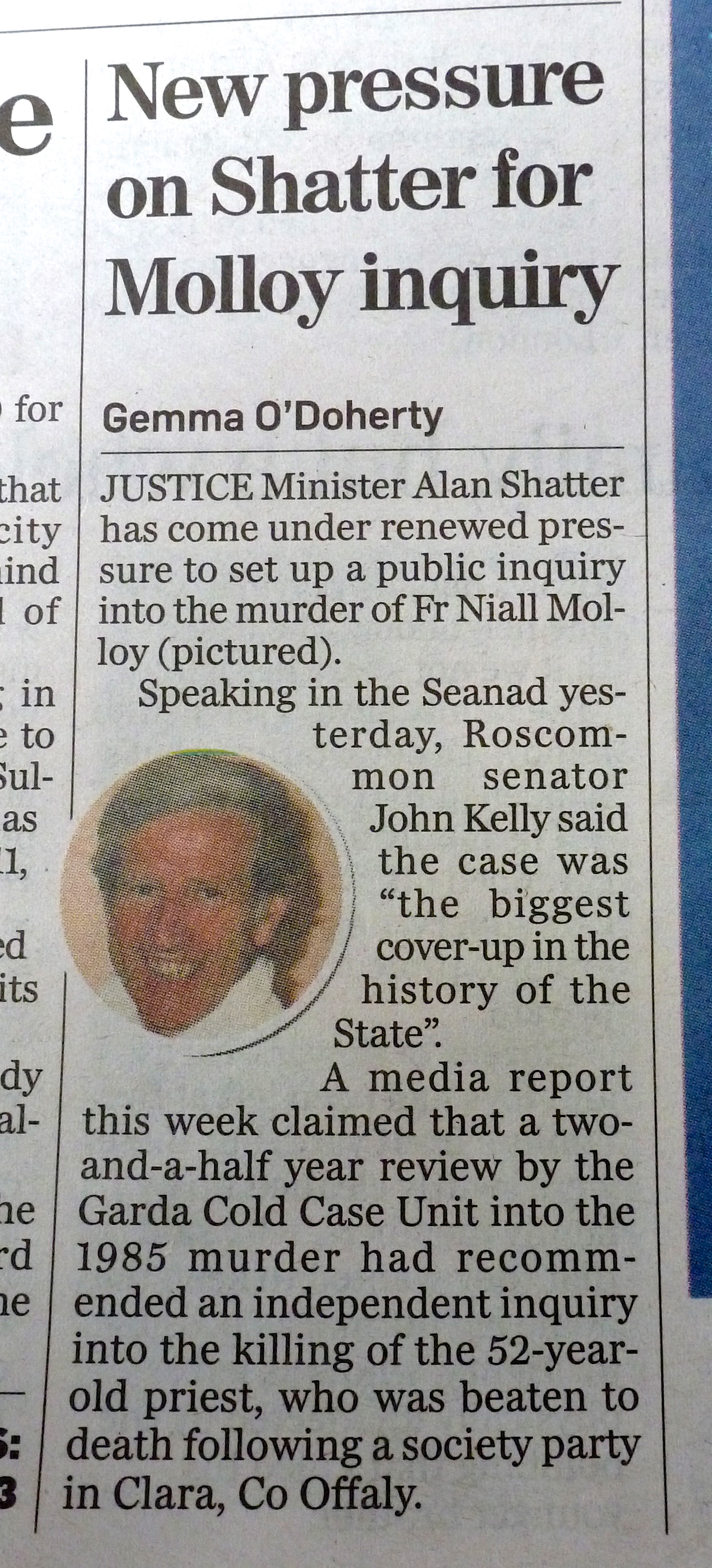 http://www.independent.ie/irish-news/td-refused-right-to-discuss-murder-of-fr-niall-molloy-28904431.html , ( 22 November 2012)