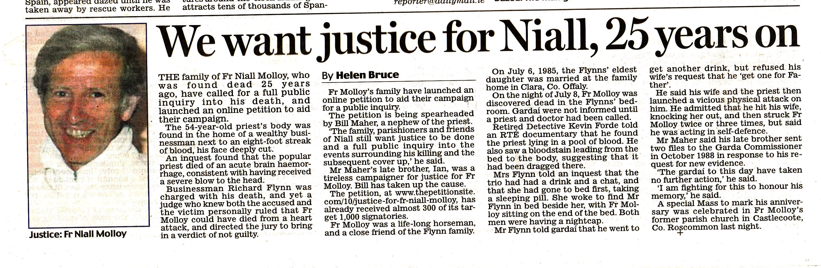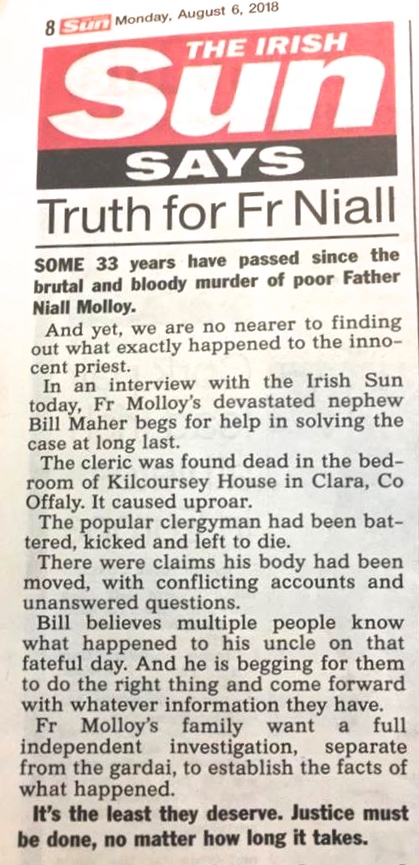 http://www.independent.ie/irish-news/calls-for-probe-into-sordid-coverup-of-fr-niall-molloys-death-28901716.html Iish Independent , ( 15 November 2012)