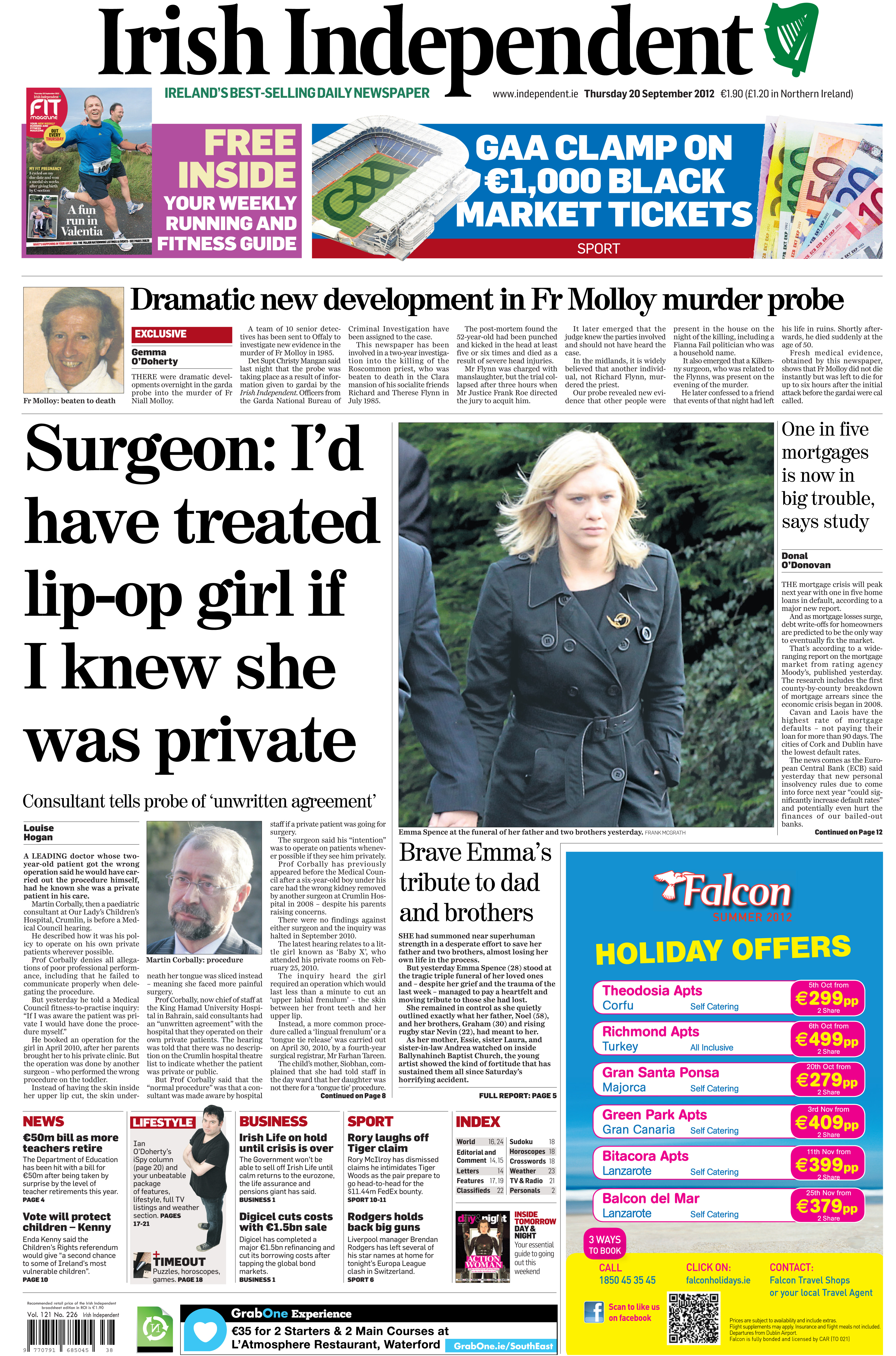 “Dramatic new moves in Fr Molloy murder investigation”. Irish Independent. (20 September 2012)