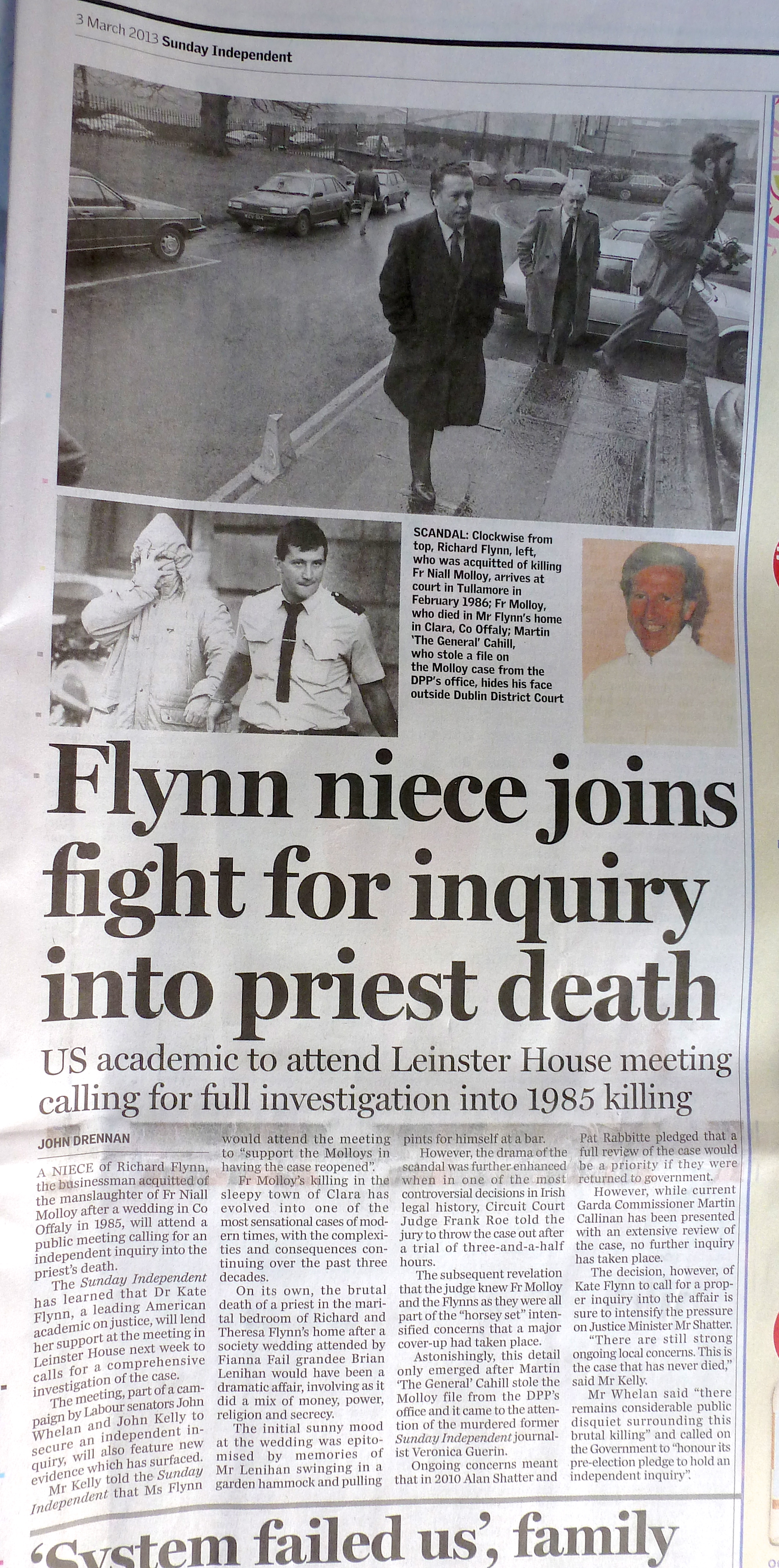“Member of Flynn family in appeal on Fr Molloy case” Maresa Fagan ( 29 January 2013 )