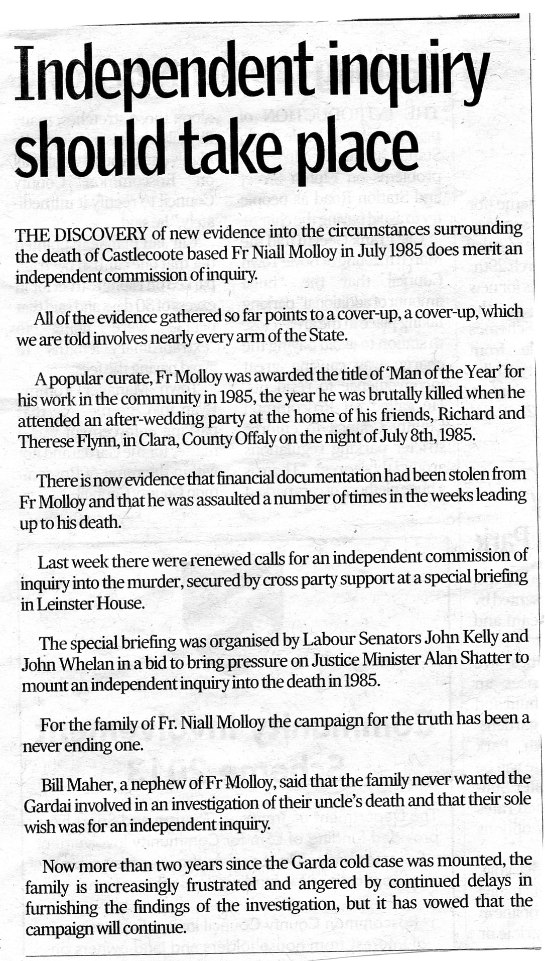http://www.offalyindependent.ie/news/roundup/articles/2012/11/16/4013297-state-inquiry-into-fr-molloys-death-sought (16th /Nov /2012)