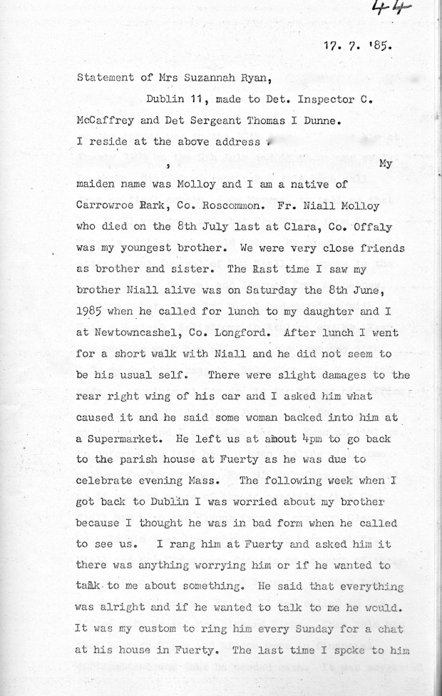 Statement from Sue Ryan , Fr Niall’s sister